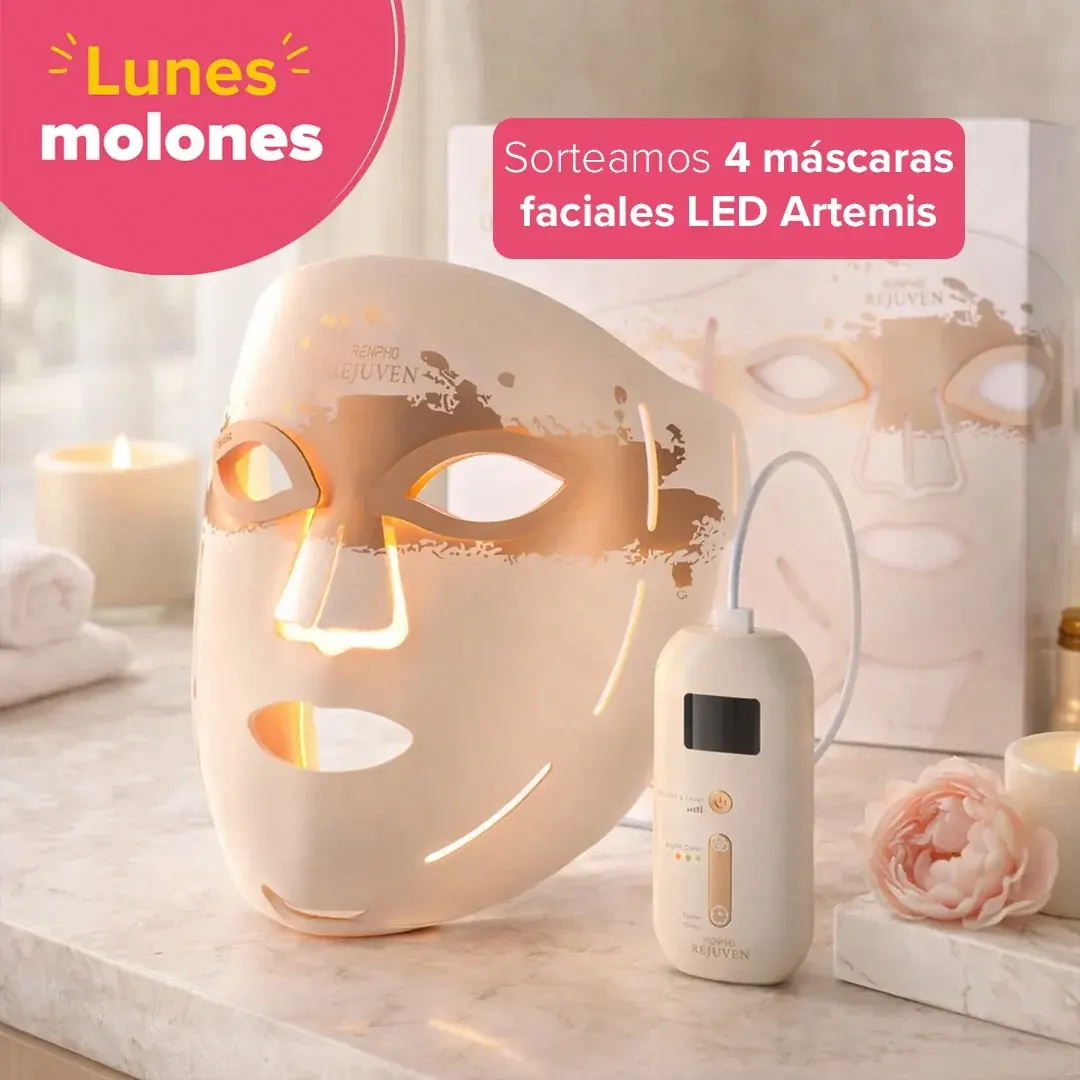 Carrefour España celebra sus #LunesMolones con un sorteo en Facebook en el que puedes ganar una máscara facial LED Artemis. Para participar, sigue la cuenta oficial de Carrefour, dale “me gusta” a la publicación y comenta con el hashtag #LunesMolones mencionando a un amigo (cada amigo diferente cuenta como una participación). El sorteo finaliza el 19 de abril de 2026. Carrefour recuerda que nunca pedirá datos bancarios ni que hagas clic en enlaces sospechosos.