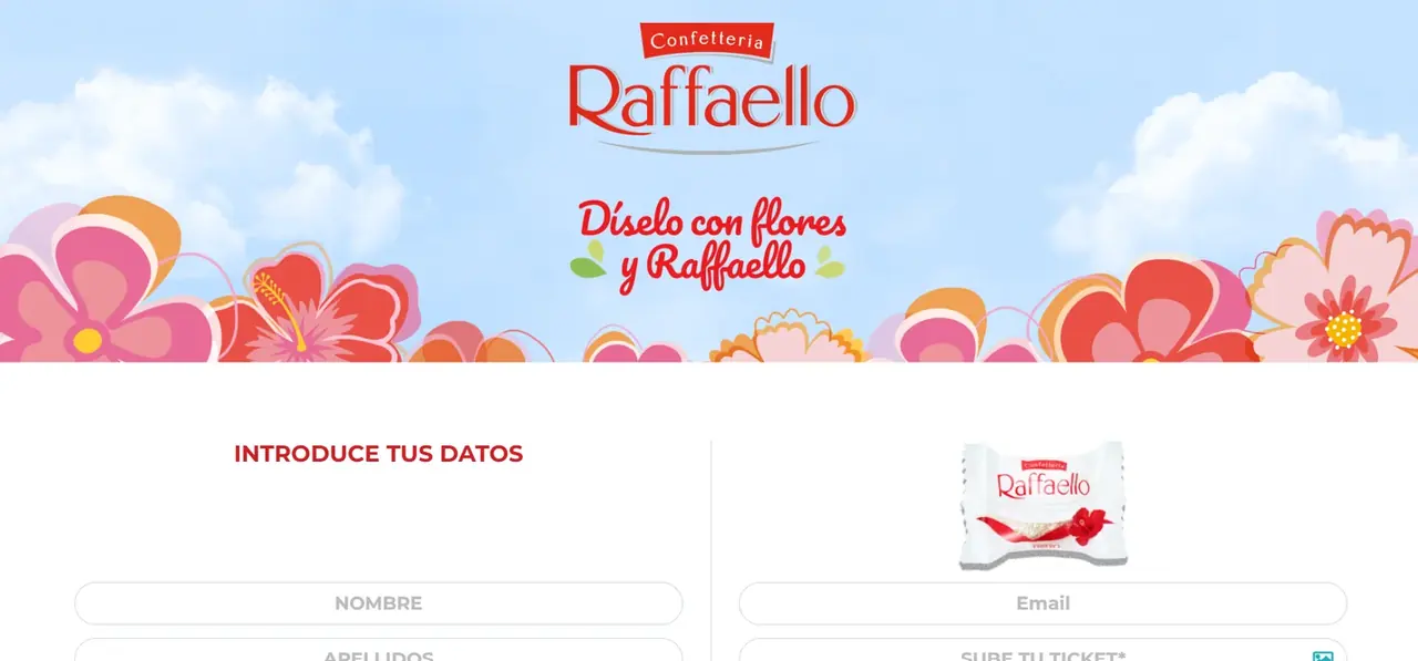 Raffaello celebra el Día de la Madre con una promoción en la que puedes ganar un ramo de flores preservadas. Solo tienes que comprar productos Raffaello por un importe mínimo de 3€, registrarte en la web de la promoción y subir tu ticket. El sistema funciona por “momento ganador”, así que sabrás al instante si has sido premiado. Si resultas ganador, te pedirán tus datos de envío y podrás elegir entre tres modelos de ramo: Rosso, Pradera o Passion.
